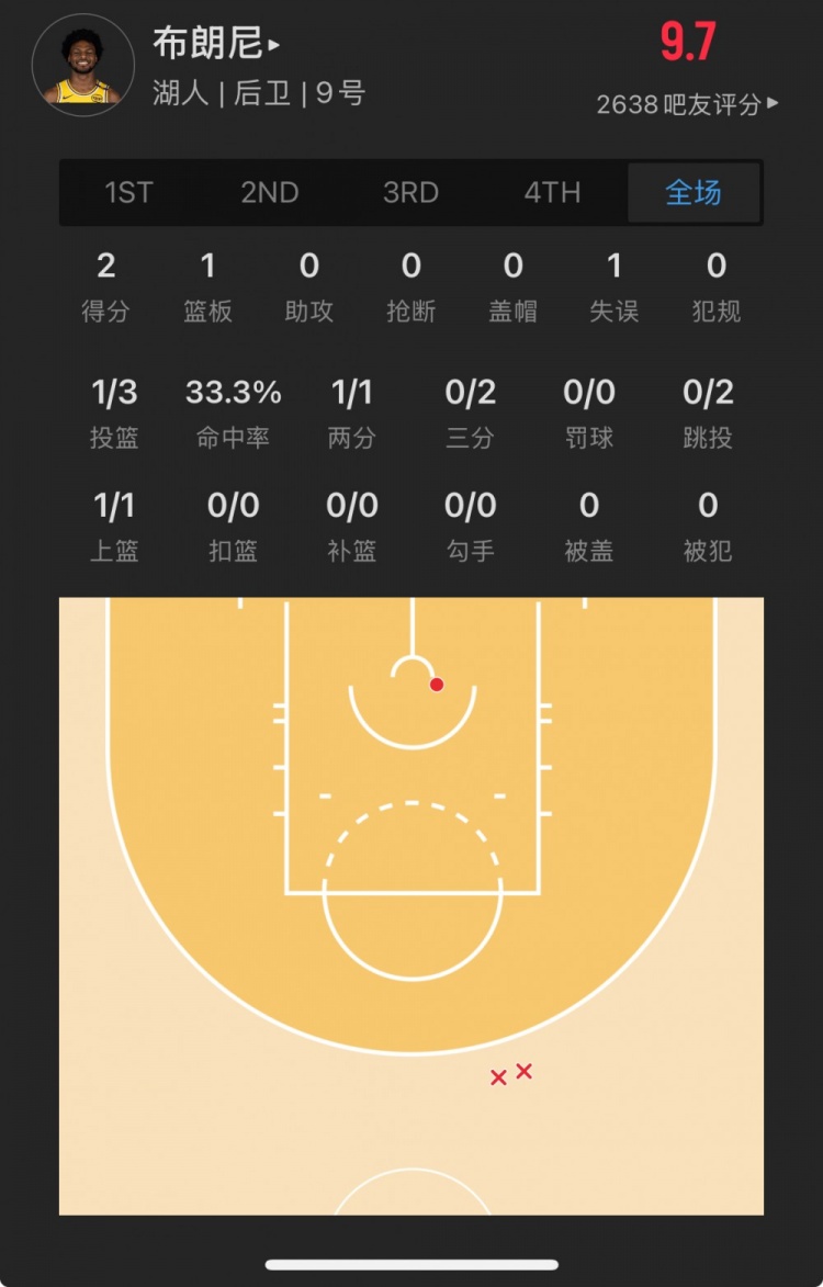 湖人55号秀 布朗尼-詹姆斯 登场4.0分钟