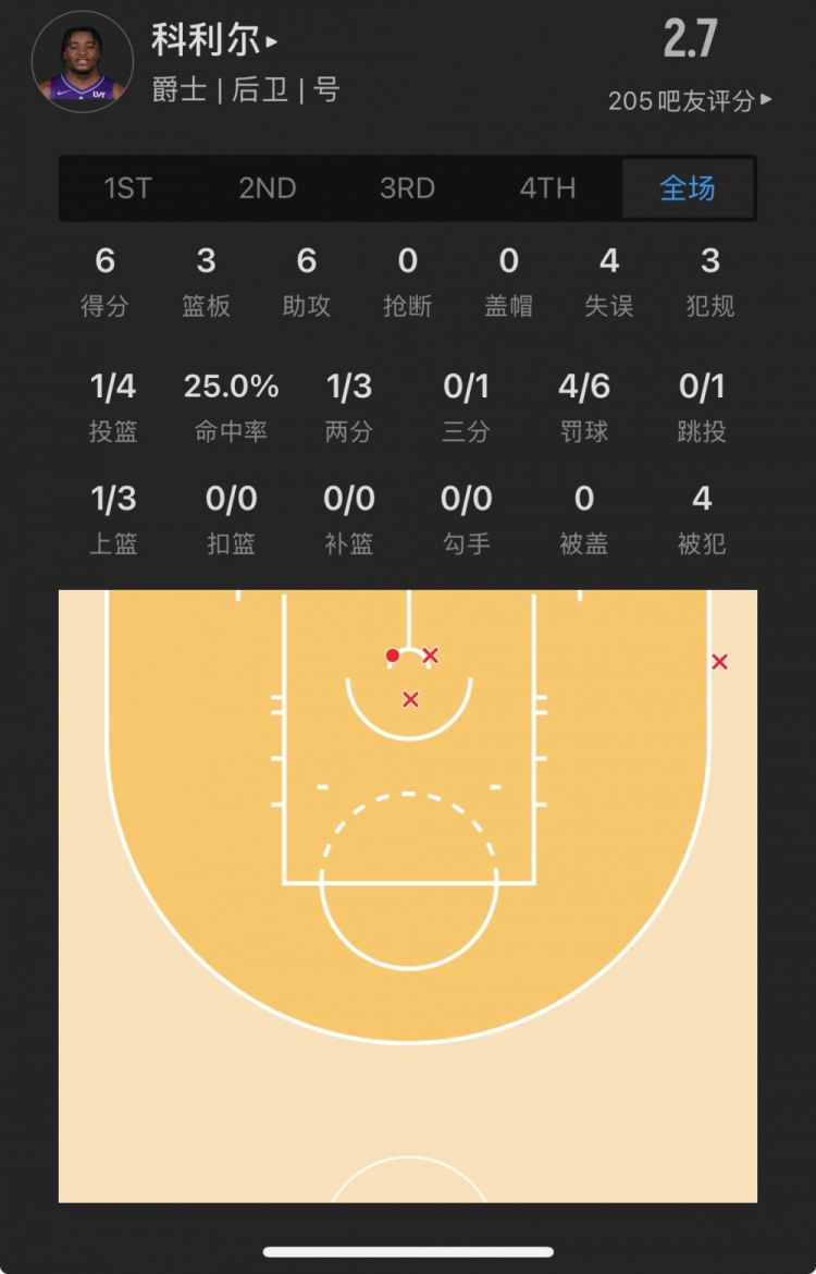 爵士29号秀 以赛亚-科利尔 登场29.9分钟