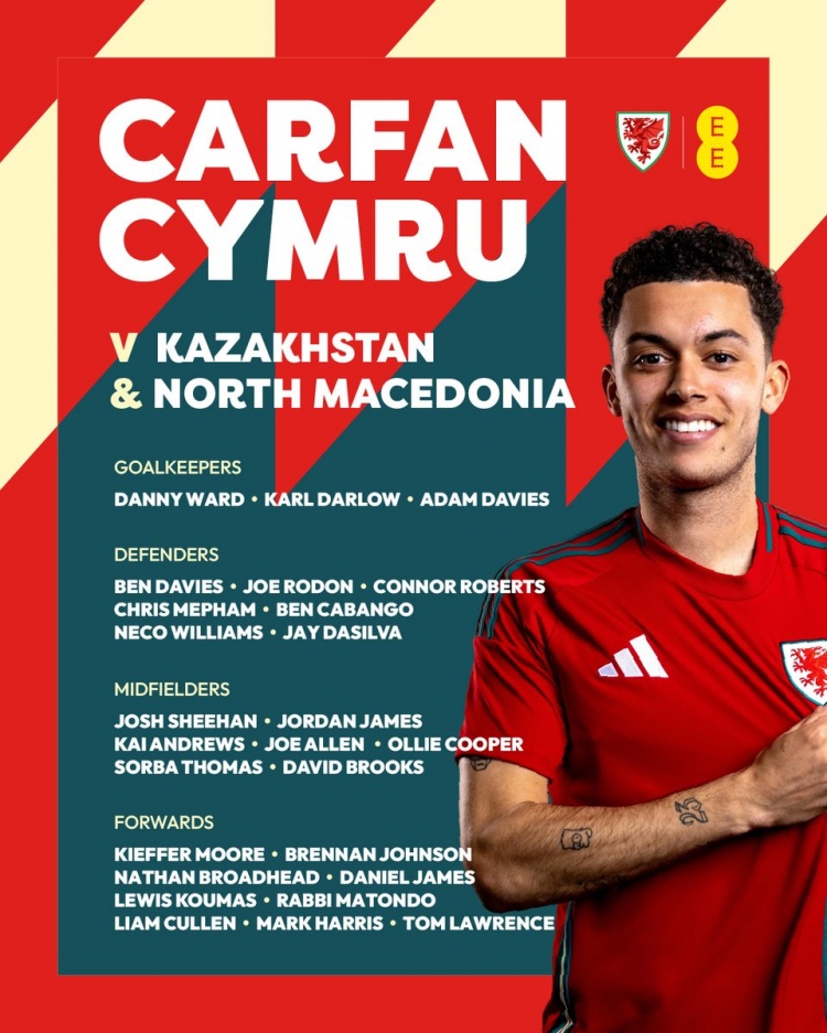 2025-03-12 22:02:20威尔士世预赛名单:布伦南-约翰逊、丹尼尔-詹姆斯、本戴维斯在列