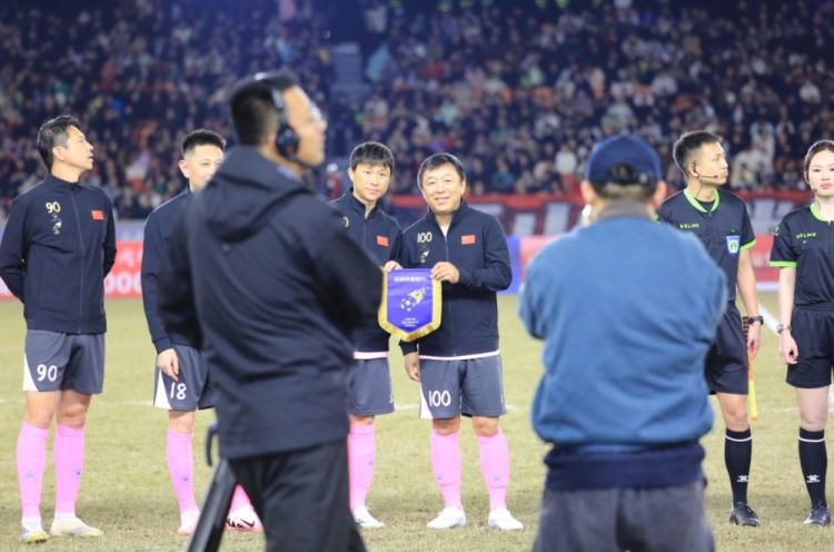 2025-03-16 21:30:19中国香港明星足球队40载巡回赛乐山站,1-2不敌海浪明星足球队