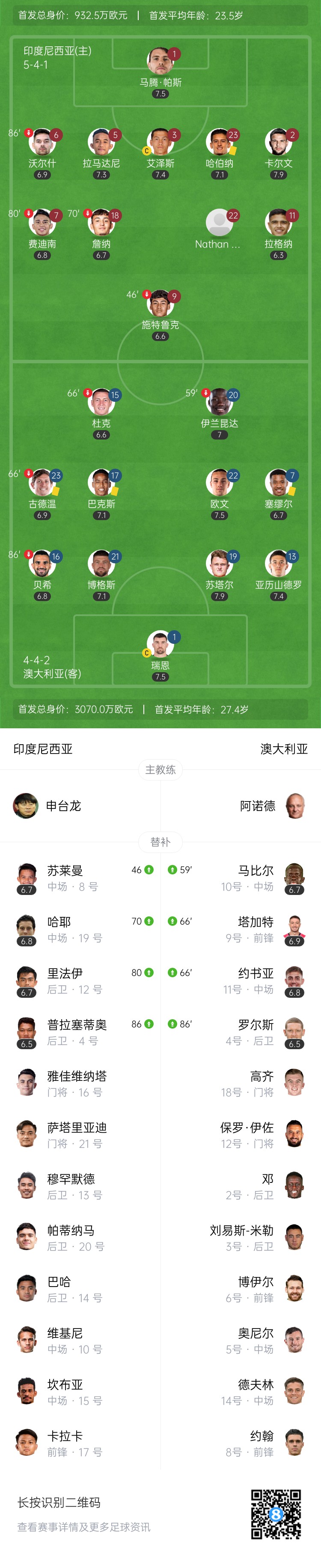 2025-03-20 23:25:03国足同组!澳大利亚vs印尼首发:印尼先发10名归化 古德温蒂格替补