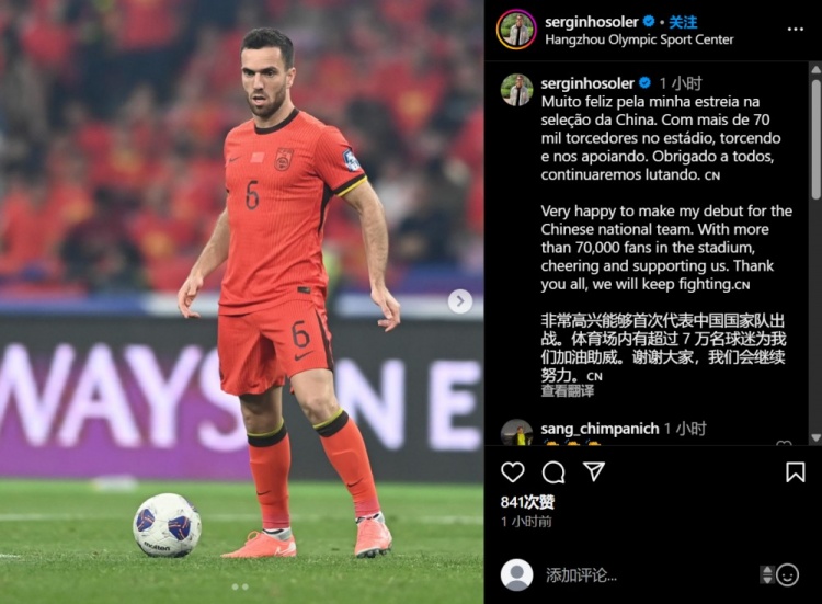 2025-03-28 02:01:40塞尔吉尼奥社媒:非常高兴能够首次代表国足出战,会继续努力