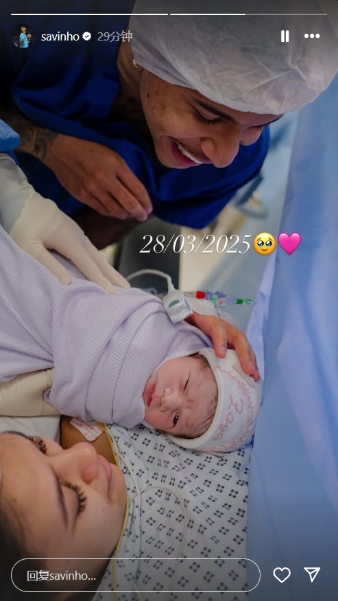 2025-03-30 20:26:35恭喜!萨维尼奥社媒晒照庆祝孩子出生