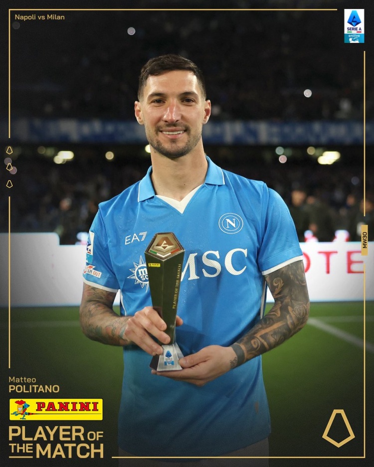 2025-03-31 10:16:26闪击米兰!官方:波利塔诺当选那不勒斯2-1米兰全场最佳球员