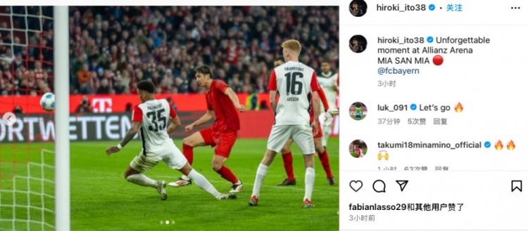 2025-02-24 16:09:30伊藤洋辉晒照纪念拜仁首球:在安联球场的一个难忘的瞬间